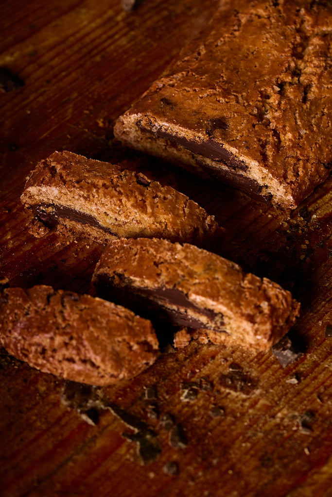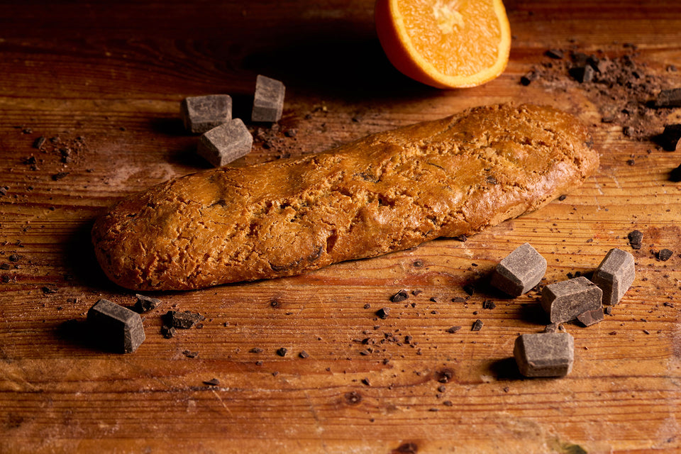 Un filone morbido che racchiude cioccolato fondente, arancia e ingredienti scelti. Dalla forma intera al cantuccio tagliato, scopri l'artigianalità e le sue forme.