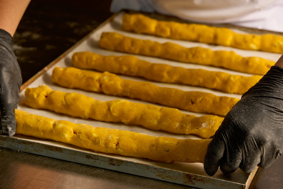 A soft loaf filled with dark chocolate, orange, and hand-selected ingredients. From the whole loaf to the sliced cantuccio, discover the beauty of true craftsmanship. It’s more than just a cookie—it’s a blend of flavors, a commitment to quality, and the icon of our history. Our signature loaf, straight from our oven to your home.